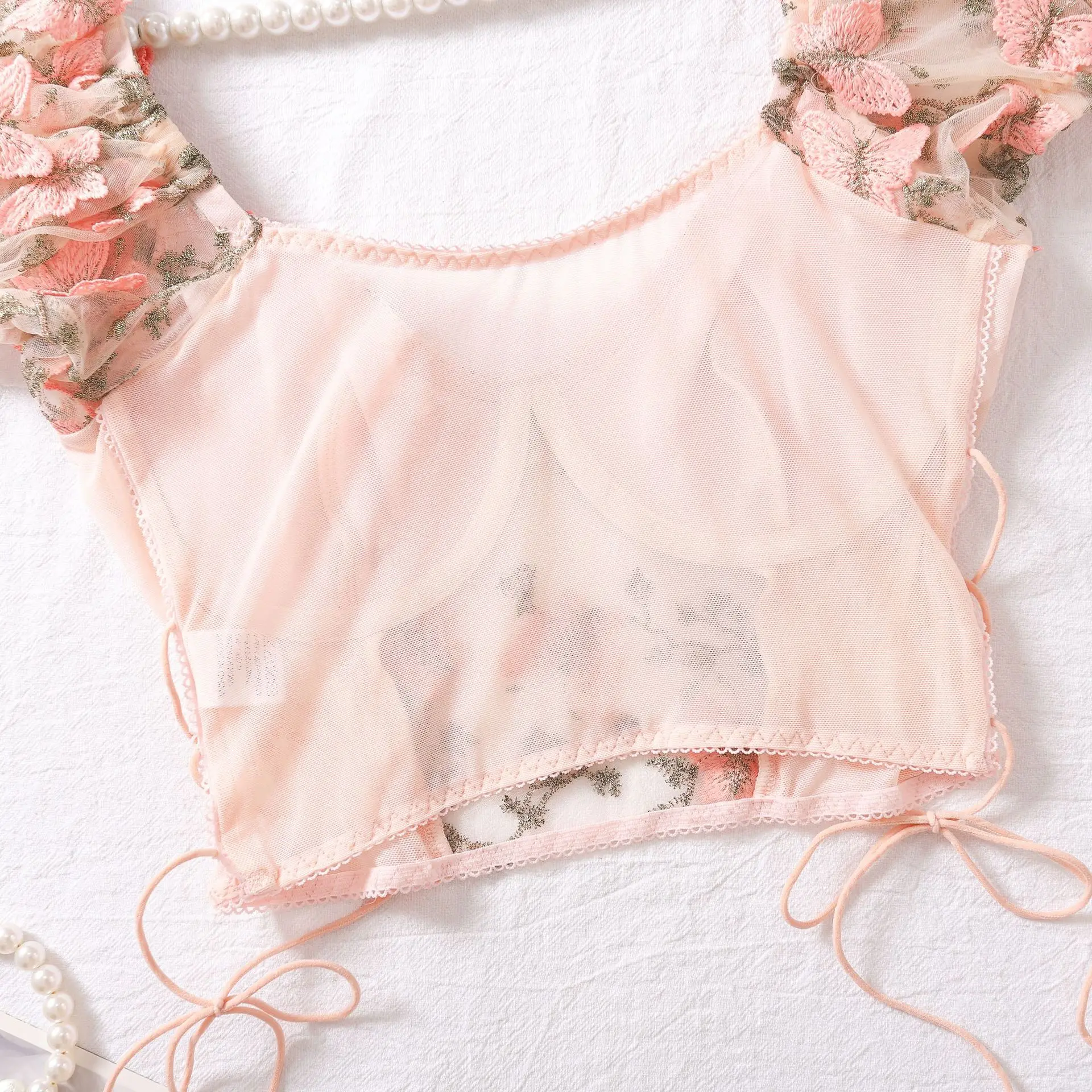 Blossom Lace Puff Sleeve Lingerie Set quantity
